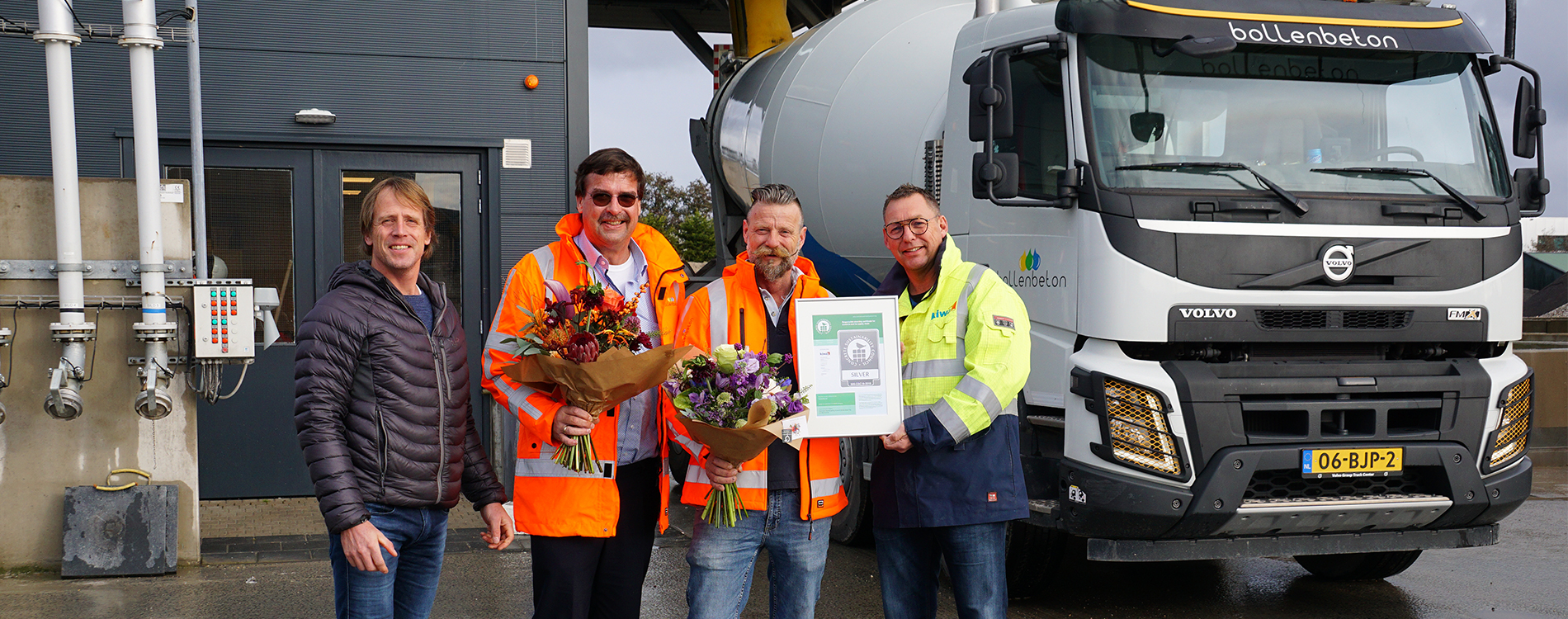 Bollenbeton heeft het Concrete Sustainability Council (CSC) certificaat behaald op niveau ‘Silver’! Vandaag hebben Jos Kraakman en Kors Droog het certificaat in ontvangst mogen nemen. CSC is een certificaat voor een duurzame productie van beton. Natuurlijk zijn wij supertrots op deze prestatie. De certificering past goed bij de visie van Bollenbeton en de doelstellingen om de milieubelasting te verlagen. Daarnaast geeft het keurmerk zekerheid en garantie voor onze afnemers.